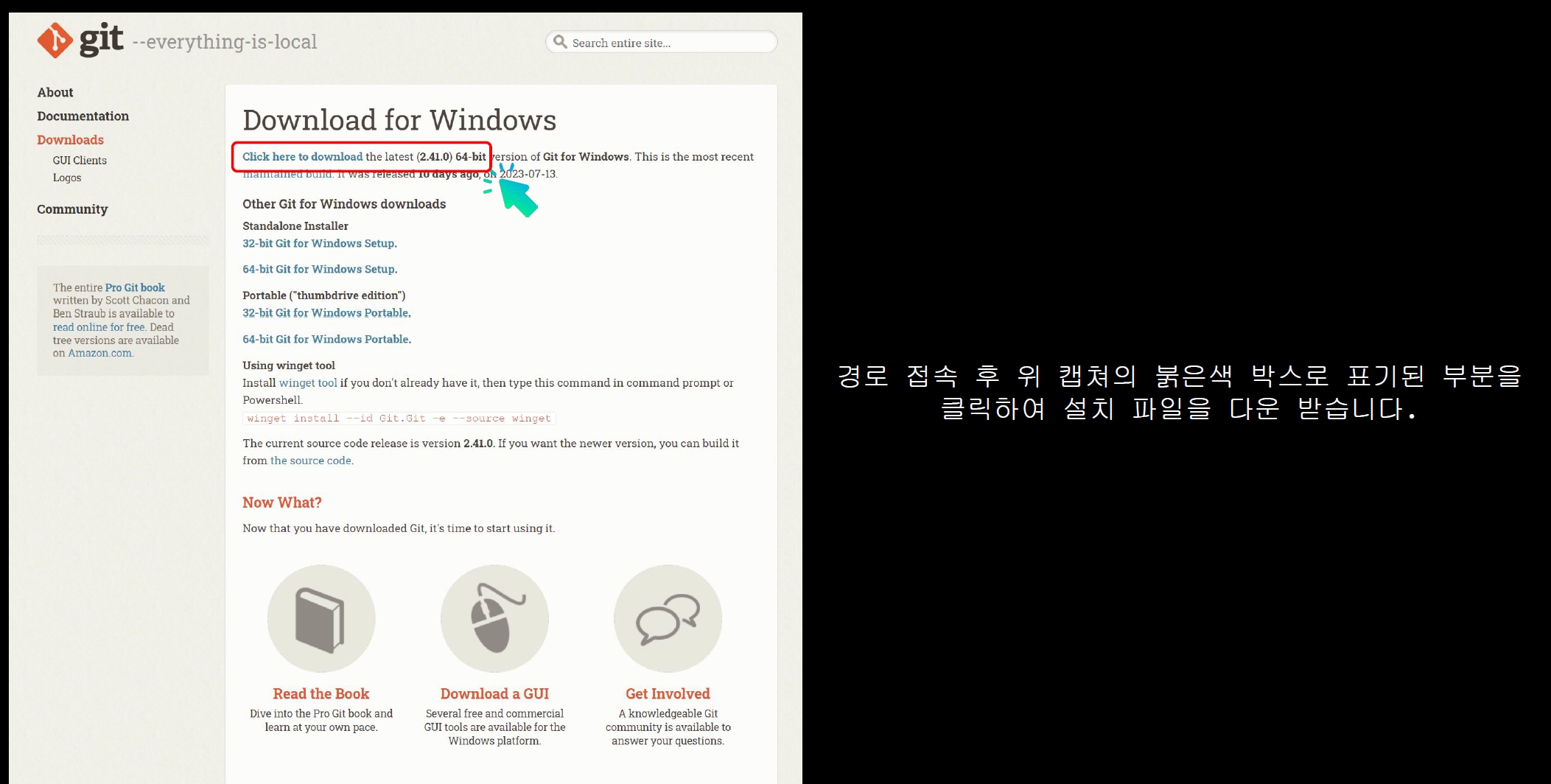 다운 받을 파일을 실행하여 Git을 설치합니다. 특별한 Option 없이 Next로 진행하여 설치합니다.