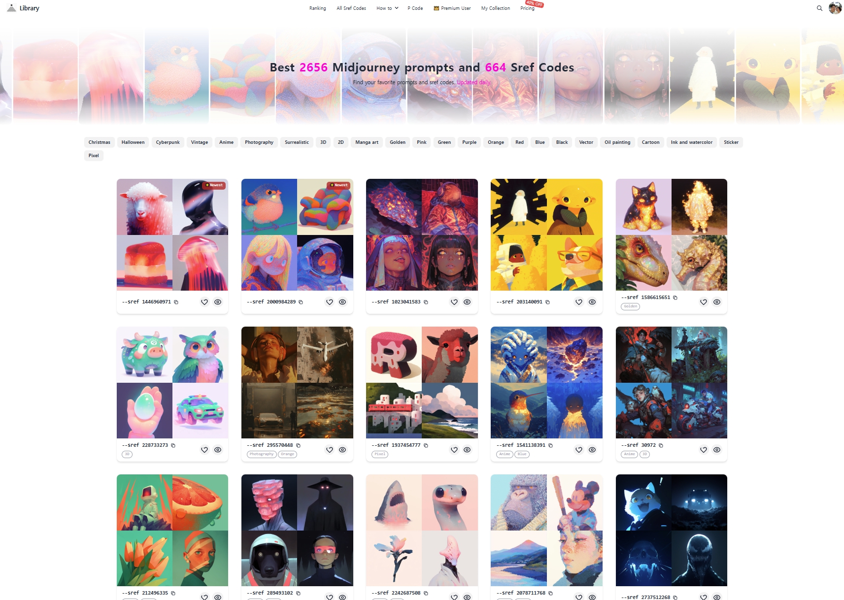 미드저니 프롬프트 및 sref code 라이브러리 사이트